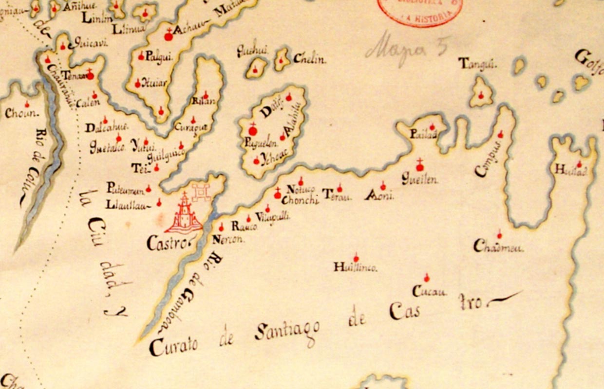 El poblamiento de Chiloé data de unos 6.200 años atrás, llegando los primeros grupos de personas al sector de Puente Quilo, en la comuna de Ancud. La llegada del europeo, transformó la vida de los habitantes del archipiélago, los cuales conformaron villorrios donde se encontraban asentamientos indígenas.
